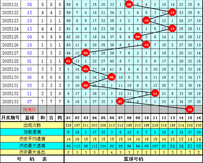 双色球第2025134期小复式参考:08 12 15 16 20 24 27 31 33 + 01 12 15
