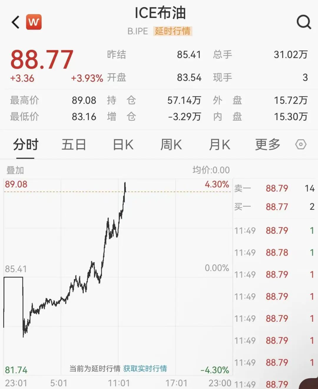 3月6日晚间,国际原油价格持续走高,布油盘中站上89美元/桶,日内一度涨4%。
