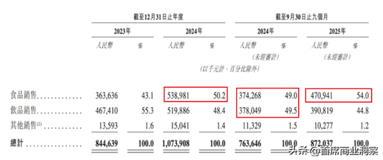 而且2024年前9个月,两者相差越来越小,到了去年第三季度,累计的餐食收入已经赶超饮水,达到4.71亿元,占比也飙至54%。