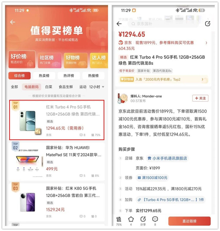 根据张大妈爆料,狗东原价1899的红米Turbo 4 Pro(12G+256G)通过多重优惠,最终实付1294.65元。我还好奇它首发价多少,查了一下是12G+256G首发价是1999元,半年时间便宜了七百块。